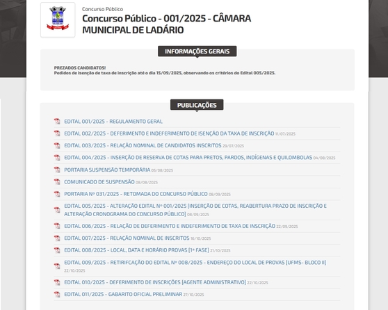 EDITAL DE CONCURSO PÚBLICO 011/2025 A Câmara Municipal de Ladário – Estado de Mato Grosso do Sul, por intermédio da Comissão de Concurso Público, constituída através da Portaria 27/2025 TORNA PÚBLICO para conhecimento dos interessados, o Gabarito Oficial Preliminar da prova objetiva, realizada no dia 26/10/2025.