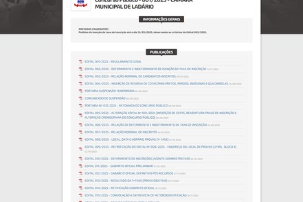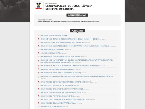 A Câmara Municipal de Ladário – Estado de Mato Grosso do Sul, por intermédio da Comissão de Concurso Público, constituída através da Portaria 27/2025 TORNA PÚBLICO para conhecimento dos interessados, a reprogramação do Cronograma Preliminar do concurso público, a saber: